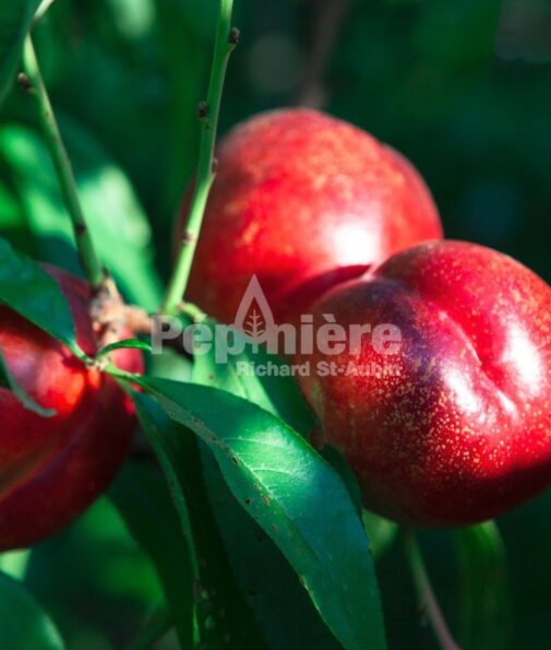 Vigoureuse et rustique, ‘Hardy Red’ produit des fruits rouges brillants à la chair jaune sucrée et juteuse, avec un goût proche de la pêche. Ses fleurs roses apparaissent au printemps et attirent abeilles et autres pollinisateurs, annonçant la récolte estivale, qui s’étend généralement de mi-été. Les fruits sont parfaits à consommer frais, en desserts ou en confitures. Cette variété est autofertile, ce qui permet à un seul arbre de produire des fruits. Toutefois, planter une autre nectarine à floraison similaire peut améliorer le rendement et la taille des fruits grâce à la pollinisation croisée. Pour l’entretien, taillez légèrement en période de dormance (fin mars, début avril) afin d’éliminer le bois mort et stimuler la floraison. Arrosez régulièrement durant les périodes sèches. En hiver, protégez la base du tronc avec un paillis épais et installez une protection contre les vents froids.